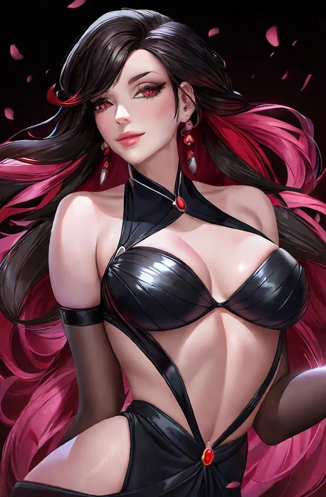 Create striking AI-generated portraits with vivid makeup and bold fashion. This image features a dark-haired woman with pink lips, red eyeshadow, and a black corset against a dreamy blue-purple gradient. Perfect for artistic visuals and professional edits using Vivago.ai's advanced AI tools.