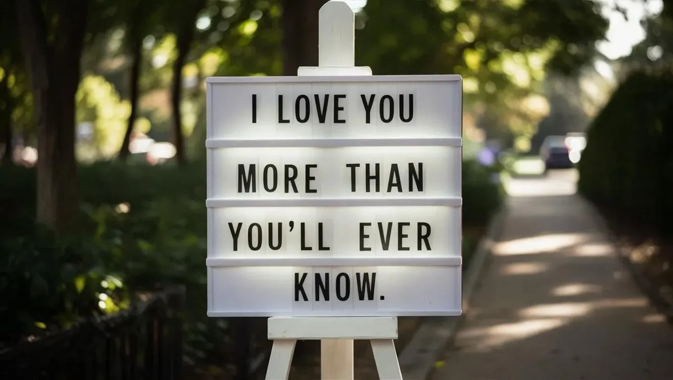 Create a heartfelt AI-generated sign with "I love you more than you'll ever know" using VivaGo.ai's text-to-image tools. Transform romantic messages into captivating visuals effortlessly, enhanced by AI effects and professional editing for personalized, emotional designs. Perfect for digital art, social media, or unique gifts.