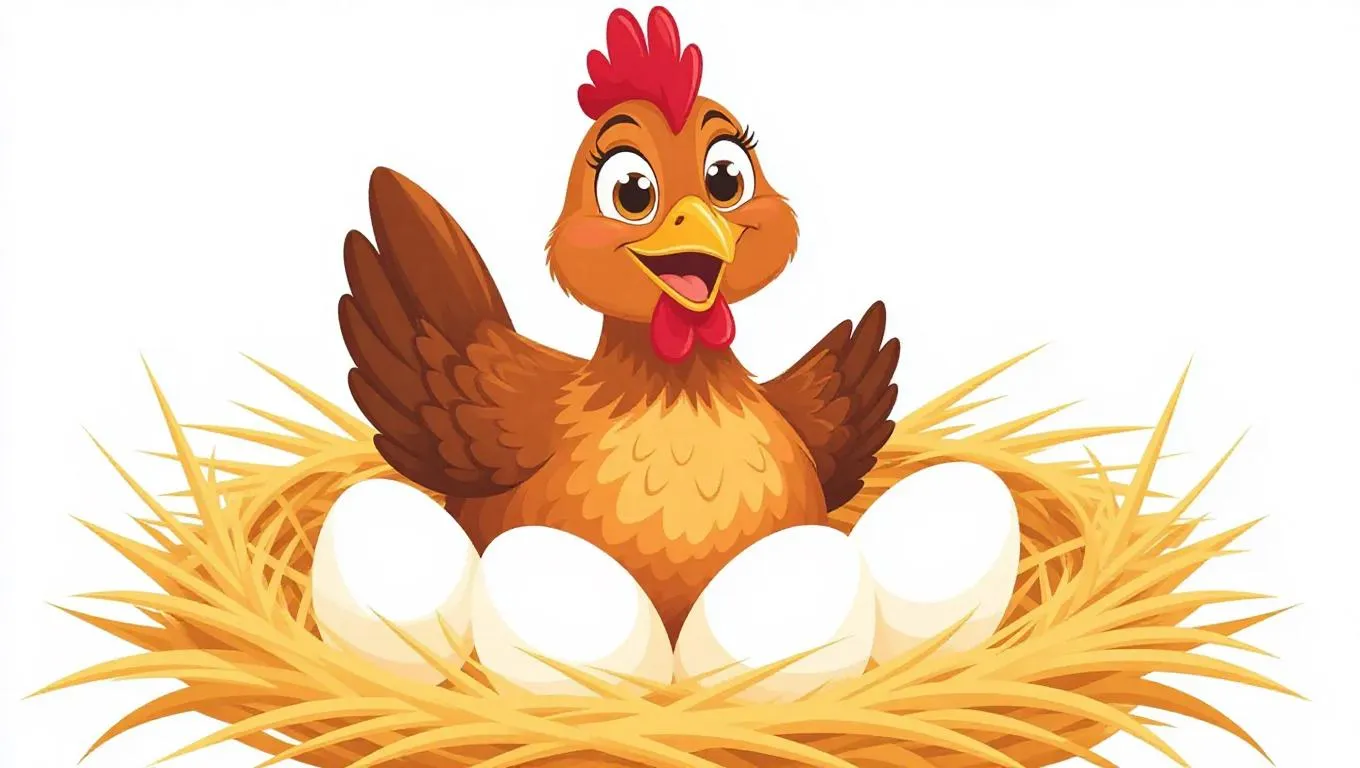 Generate a vibrant vector-style cartoon hen illustration with a cheerful expression, golden straw nest, and bold outlines. Perfect for AI-powered editing with easily separable colors, clean white background, and professional vector customization. Ideal for digital art, branding, or children's book visuals using vivago.ai's creative tools.