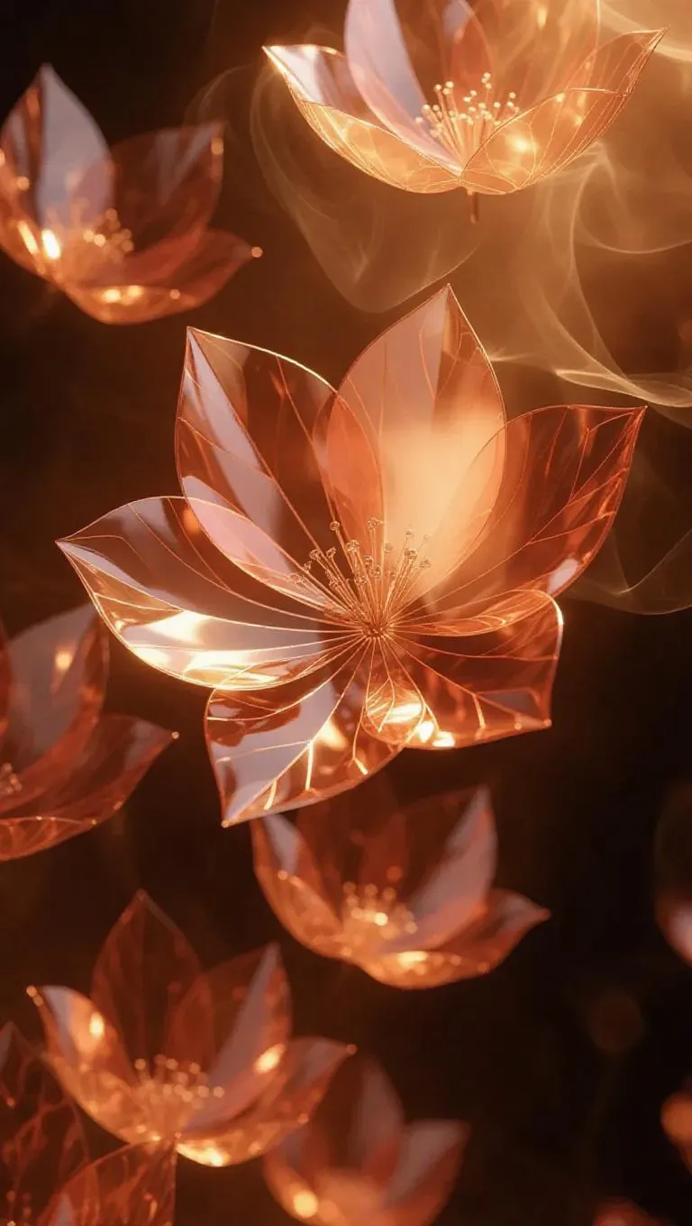 Explore AI-generated surreal art blending organic beauty with geometric precision. Rosy petals transform into crystalline shapes, bathed in golden light and ethereal smoke. Experience weightless wonder with warm, diffused lighting in this enchanting realm—perfect for creative visions. Vivago.ai crafts mesmerizing scenes balancing natural elegance and structured artistry in an otherworldly atmosphere.