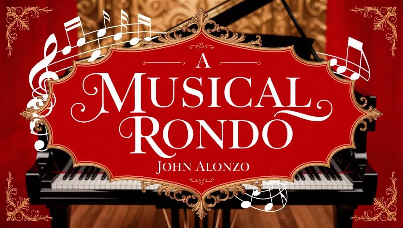 **"A Musical Rondo" by John Alonzo** Mozart-inspired grandeur meets modern artistry. Bold red and gold accents frame ornate Baroque motifs, swirling sheet music, and a quill poised over parchment. Your title gleams in gilded serif, while your name shines regally below. A subtle silhouette of Mozart overlooks a grand piano, blending timeless elegance with your creative vision. Perfect harmony of classical opulence and contemporary flair. 🎹✨