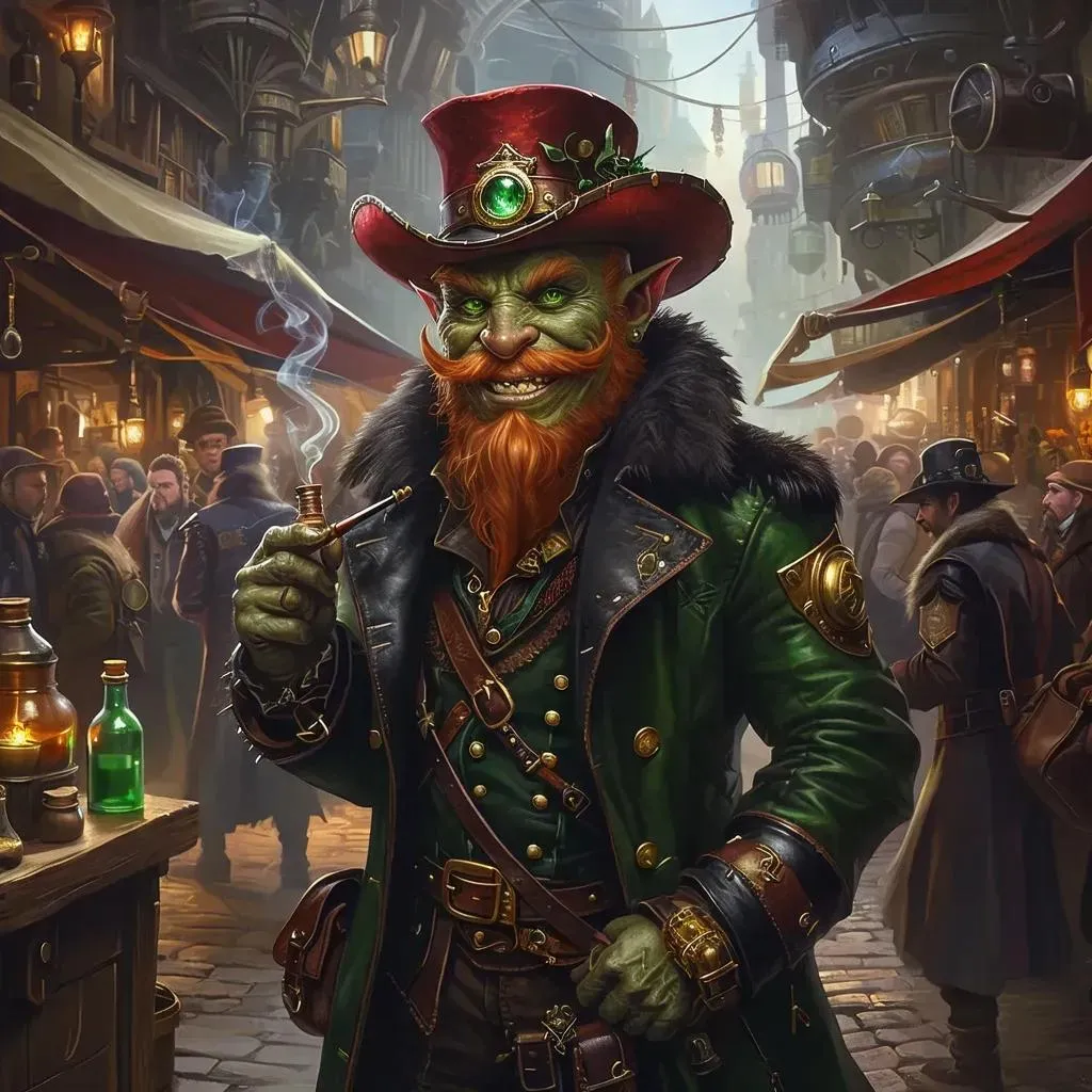 Discover a steampunk subterranean marketplace buzzing with magic and machinery. A charismatic gold-toothed goblin vendor haggles amidst glowing moss streets, clanking gears, and steam hisses. AI-generated art brings this enchanting scene—emerald-eyed mischief, leather-clad charm, and mystical potions—to life. Crafted with Vivago.ai’s tools for vivid, otherworldly visuals.