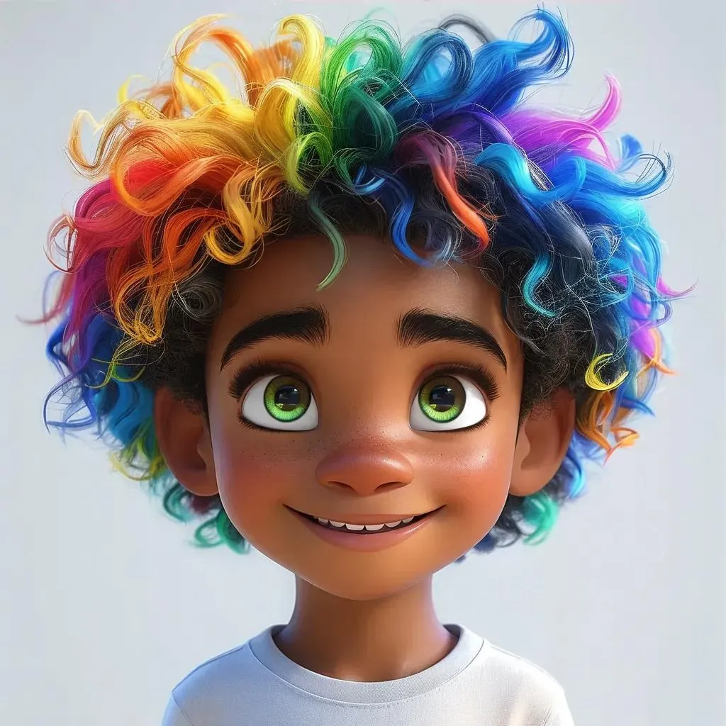 Create vibrant Pixar-style 3D characters of happy Black children with green eyes and multicolored hair. Generate ultra-detailed, high-definition AI visuals on white backgrounds for professional-grade youth-centric creative projects using VivaGo.ai's advanced image generation tools.