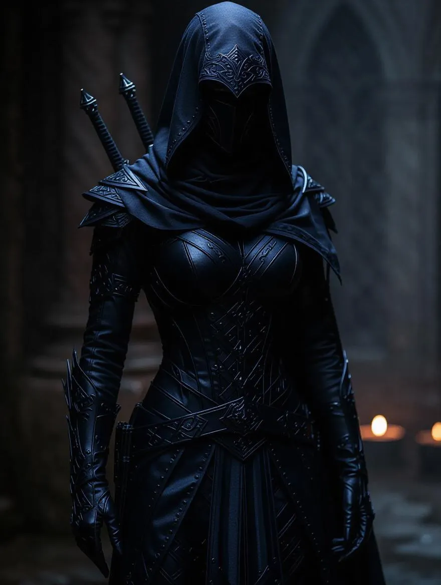 Craft stealthy rogue assassin outfits with AI using a black-gray, sky-blue, and dark-blue palette. Ideal for mysterious character designs, game art, or cosplay. Generate sleek, shadowy attire with vivid AI effects. Perfect for stealth-themed visuals, professional editing, and dynamic text-to-image transformation. Elevate your creative projects with precision.