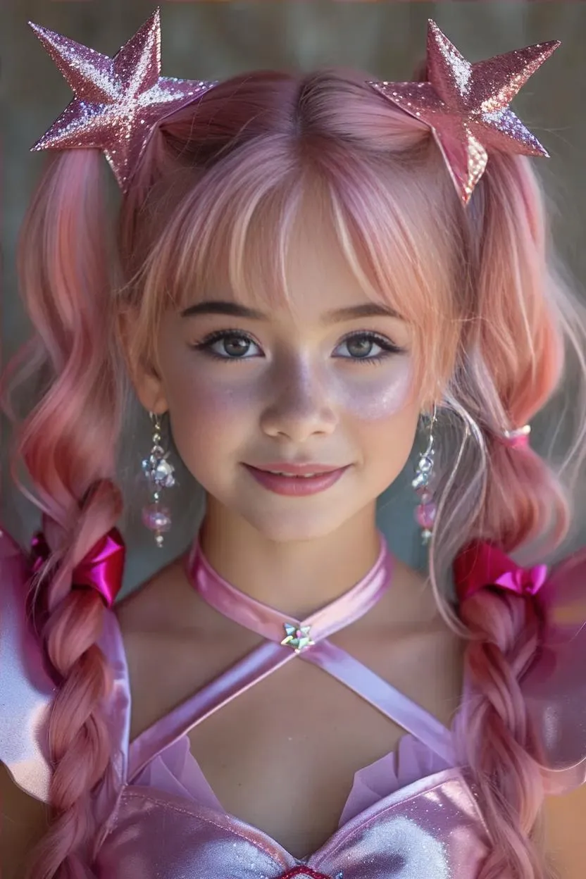 Create a stunning AI-generated image of a gender-bending Star Guardian Lux transformation. Features pink girly wig, magical costume, heavy makeup, glitter eyeshadow, and feminine details. Perfect for anime cosplay, fantasy art, and creative genderfluid character designs. Elevate your visuals with vibrant AI effects and lifelike anime-inspired transformations.