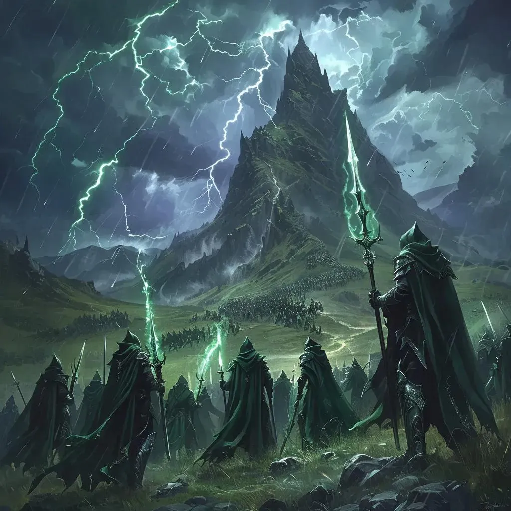 Drow elves harness dark elven magic in a stormy fantasy battle scene. AI-generated art captures glowing eyes, arcane clashes, and dramatic shadows under a tempestuous sky. Craft ominous weapons, dynamic energy, and eerie ambiance with Vivago.ai’s AI tools for epic, immersive visuals. Perfect for dark fantasy creators seeking intense, magical warfare imagery.