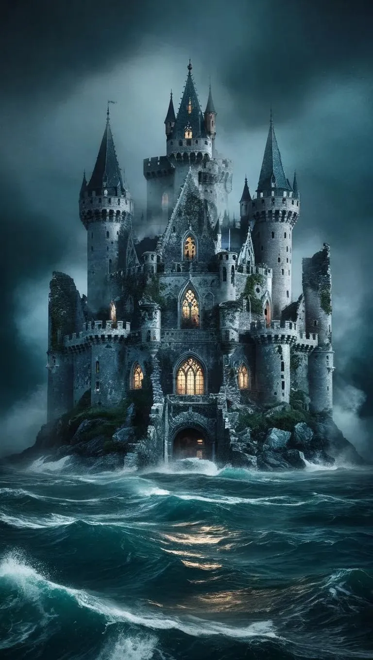 Generate a surreal AI castle in the ocean with vivago.ai. Create stunning visuals of fantasy sea fortresses, dramatic waves, and ethereal architecture. Transform text prompts into mesmerizing AI-generated castles, perfect for concept art, world-building, or digital storytelling. Explore limitless oceanic landscapes with professional AI image tools.
