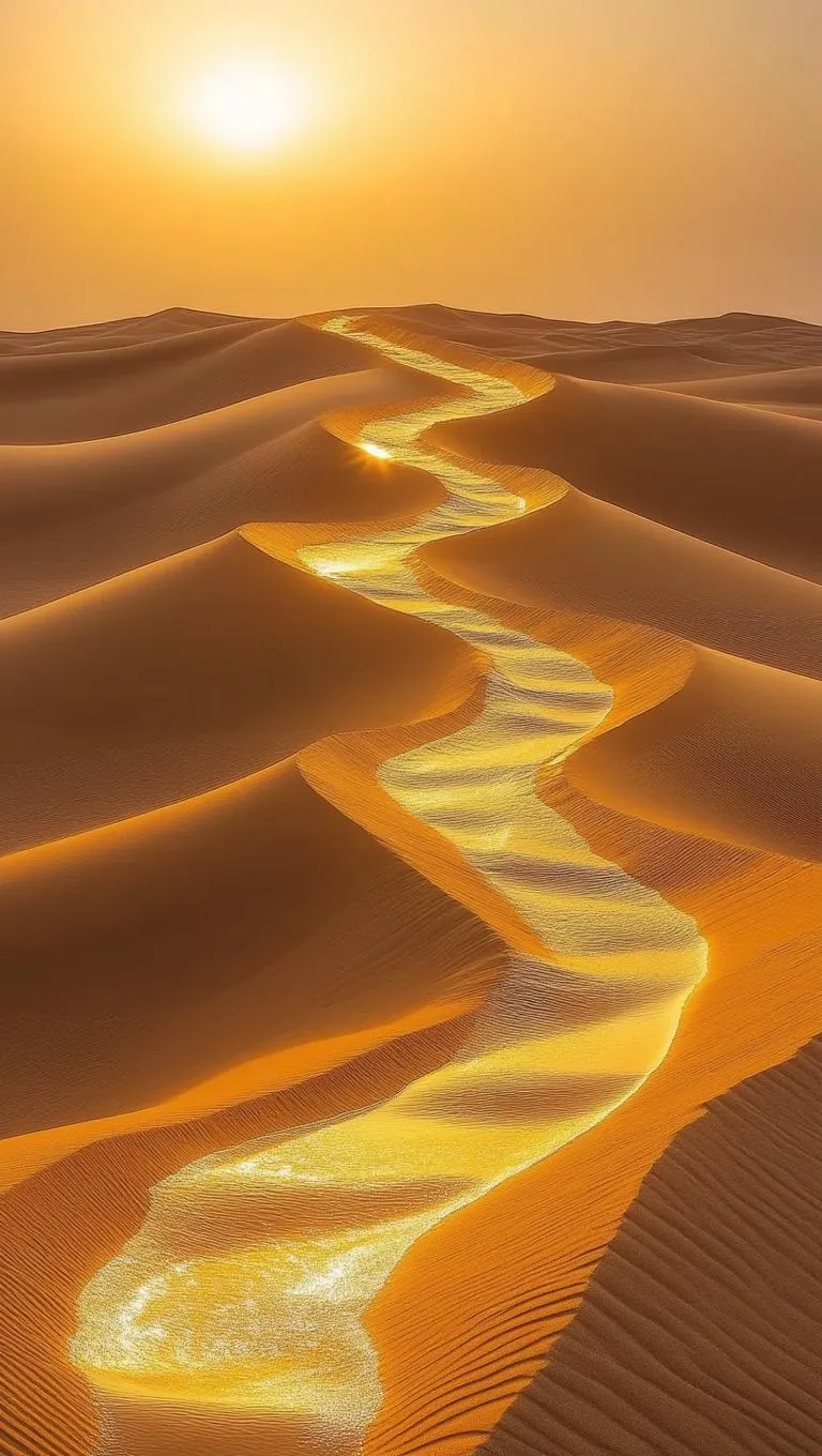 Generate a surreal golden desert scene with frozen wave-shaped dunes and melting clocks under a dreamy sunset. AI-powered tools create warm tones, elongated shadows, and ethereal atmospheres for professional-grade surreal art. Transform text prompts into imaginative visuals with vivago.ai's advanced image generation.