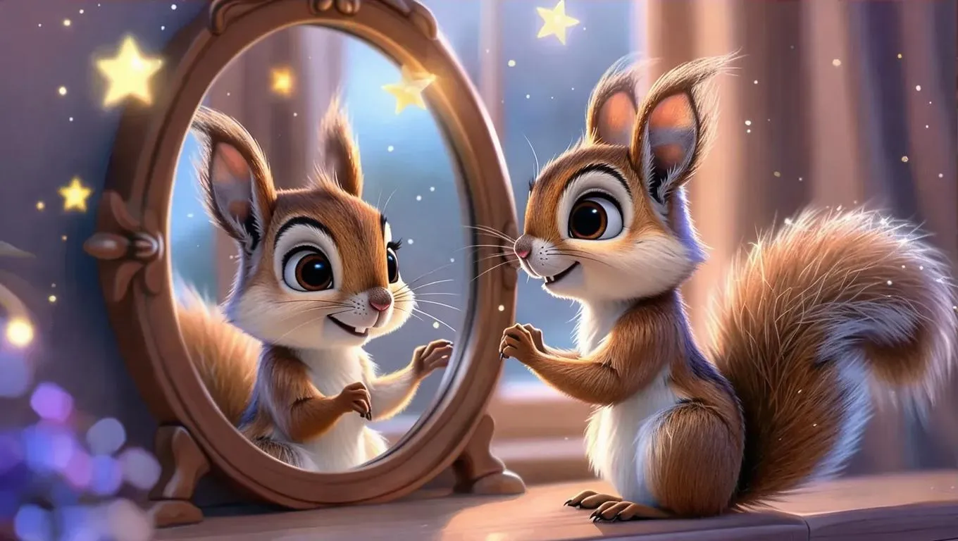 A mischievous fox frolics through the snow-laden hills of Lapland, Finland, its paws crunching on the frozen surface. The fox is cloaked in a plush fur coat and a charming scarf, exhaling visible puffs into the chilly air. Behind it, towering snow-draped trees and a glistening icy river flow quietly, glimmering under the bright midday sun. In the distance, a quaint wooden cabin is tucked away at the forest's edge, smoke curling up from its chimney. The air is fresh and alive with the earthy scent of winter woods.