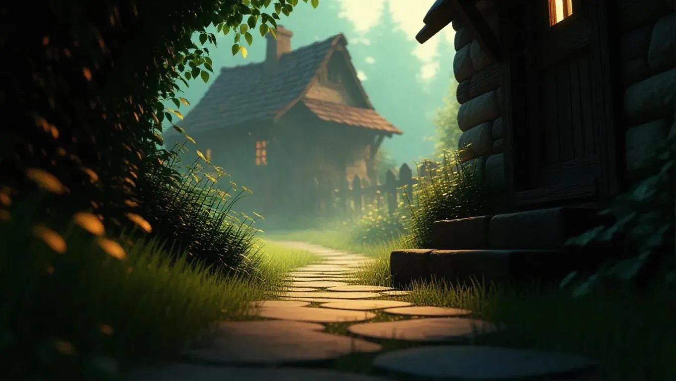 Generate a serene 2D cartoon-style AI scene: a rural doorstep bathed in morning light, untouched dirt path, lingering night chill, and eerie stillness. Transform text prompts into vivid visuals with Vivago.ai’s AI image generator for professional-grade, atmospheric artwork and curated effects.