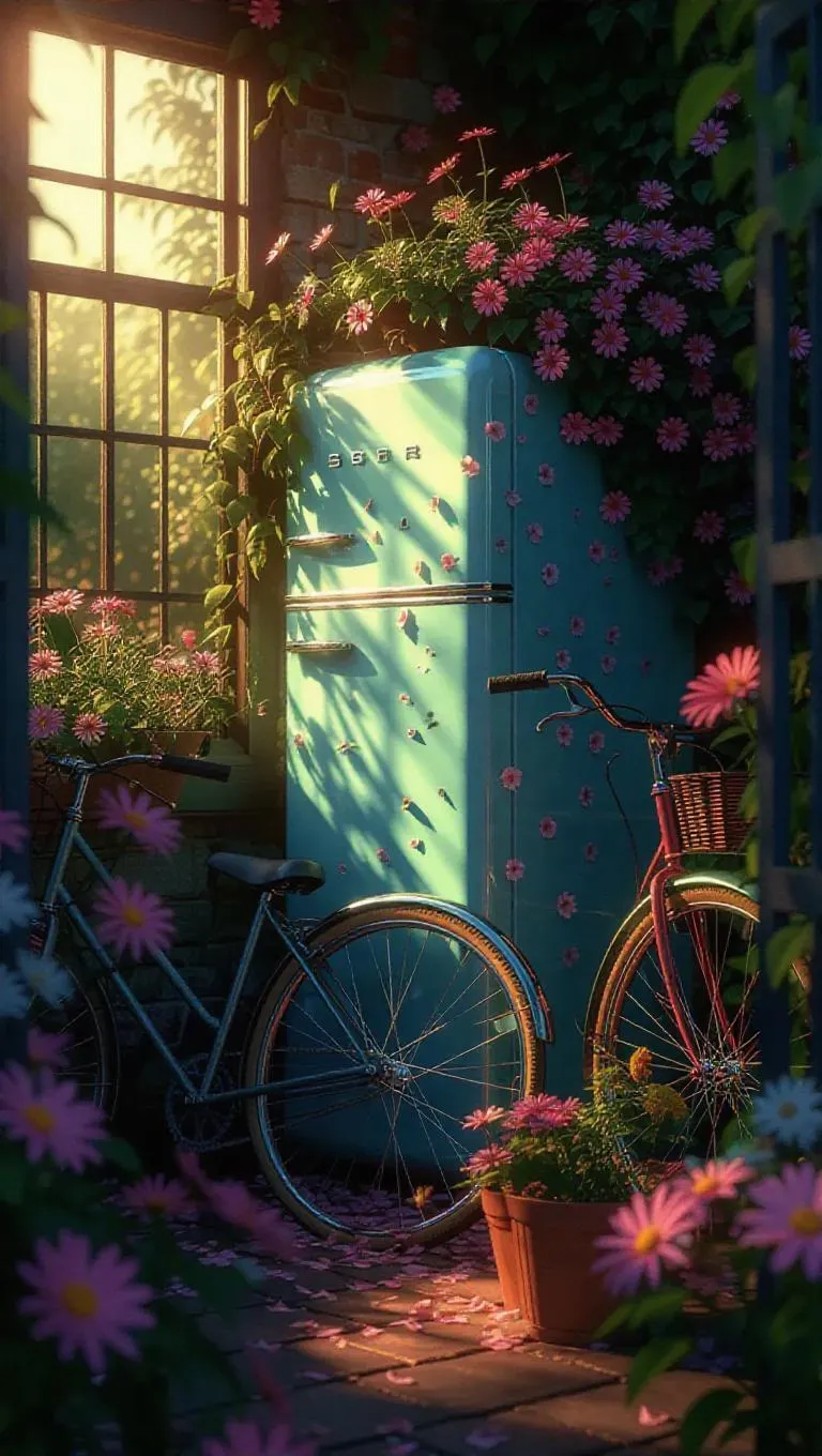 Transform your imagination into stunning AI-generated fantasy art with Vivago.ai. Create vibrant fairy-tale scenes featuring flower-covered refrigerators, bicycles, and gates in a sunlit garden. Ultra-HD 300dpi resolution captures delicate petals, glowing stamens, and whimsical details. Perfect for enchanting, multi-angle compositions blending nature and magic in a dreamy, ethereal style.