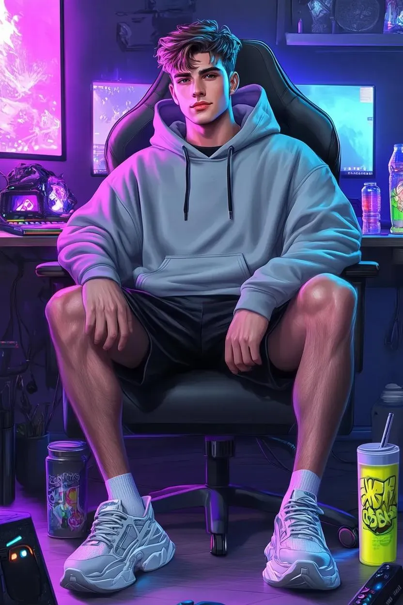 Generate stunning AI art with vivago.ai! Turn text prompts into vivid visuals like this detailed masterpiece: a trendy gamer in ash-gray hoodie, neon-lit setup, and urban aesthetics. Experience high-quality AI image generation with professional editing tools for perfecting modern digital artwork.