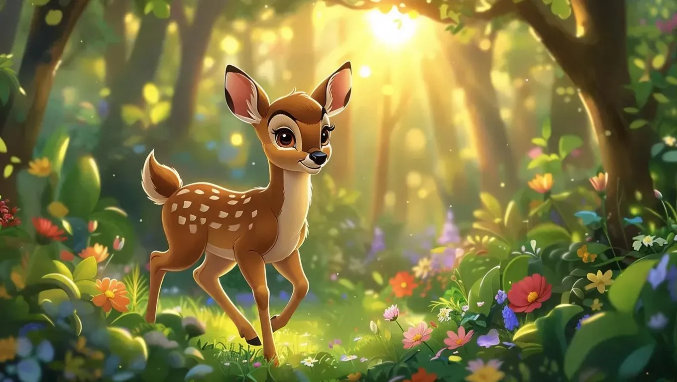 Create a charming AI-generated scene of a cute deer in a vibrant garden with blooming flowers, lush trees, and golden sunlight. Perfect for nature-inspired visuals, storytelling, or wall art. Explore vivago.ai's AI tools for lifelike wildlife imagery and creative transformations.
