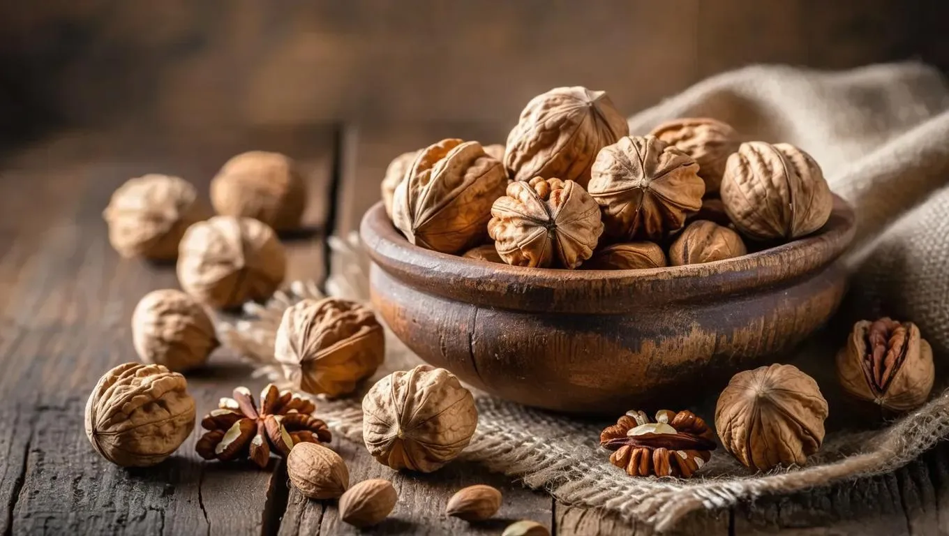 Generate stunning AI images of vibrant walnuts artfully arranged in a bowl and scattered naturally outside. Elevate your visuals with lifelike textures, lighting, and composition using VivaGo.ai's creative AI tools for high-resolution, professional-grade results from text prompts.