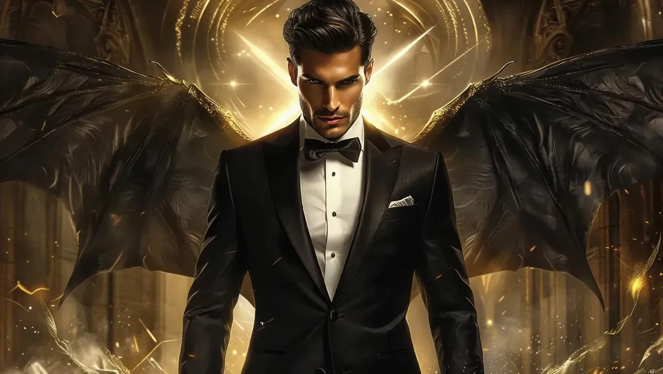 Generate a striking AI image of Lucifer Morningstar as an elegant man in a black suit, radiating infernal power amid hell's fiery backdrop. Perfect for demonic character designs, supernatural aesthetics, and dark fantasy visuals with professional-grade AI artistry.