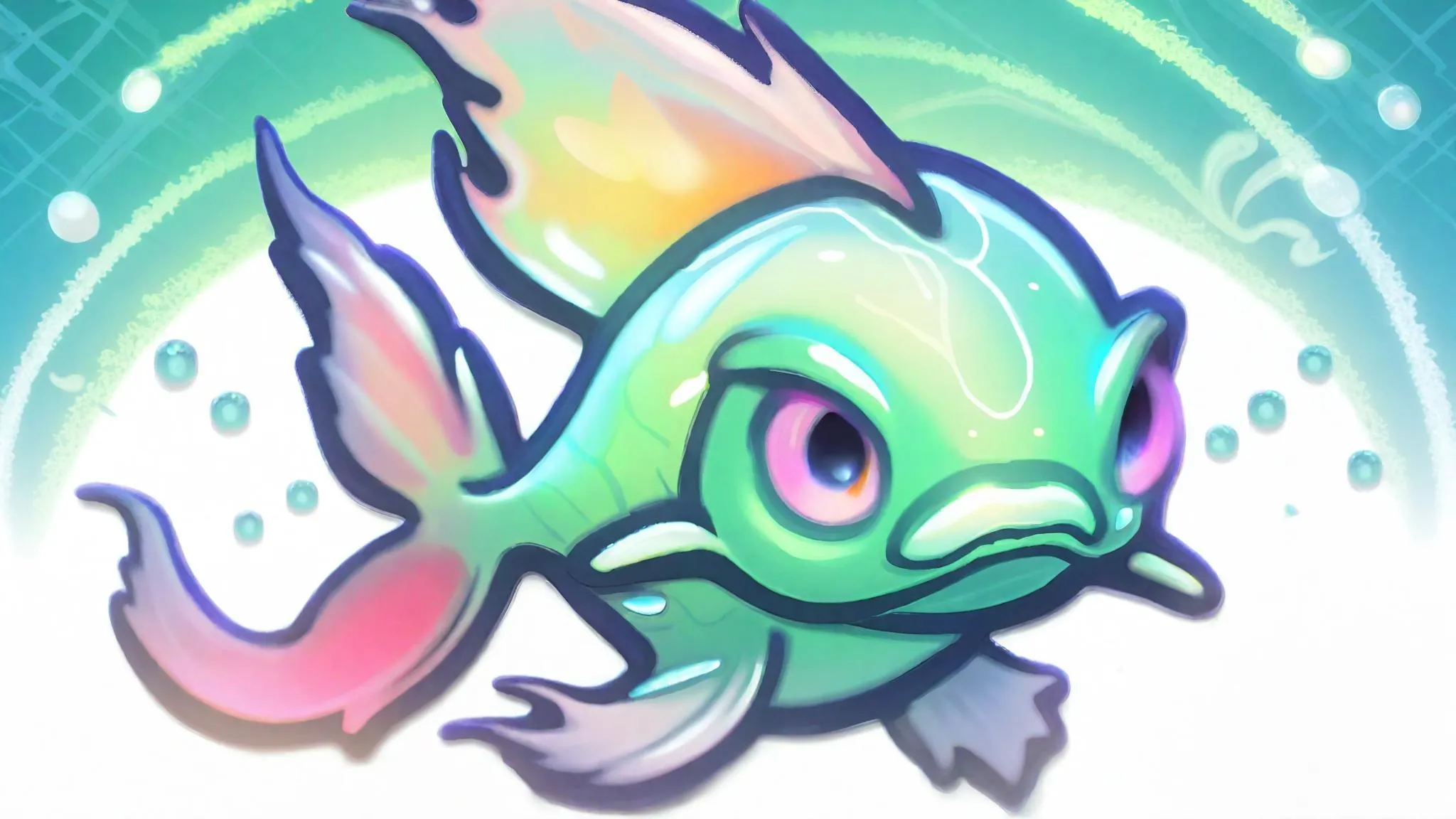 Sparkling AI-generated cartoon koi carp leaps in a turquoise pond, neon-green cel-shaded scales shimmering under fluffy clouds. Dynamic 2D animation textures showcase glittering water droplets, ribbon-like fins, and bold black-outlined lily pads. Modern digital artistry blends glossy highlights, deep shadows, and soft pastel cherry blossoms for playful storybook charm. Create vibrant aquatic scenes with Vivago.ai’s AI effects and creative tools.