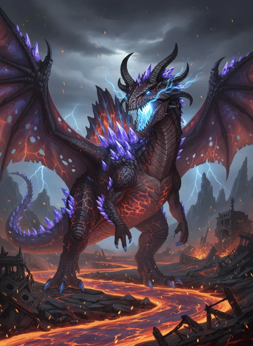 Generate epic lava dragon art with vivago.ai! Create the phantom fire hyper dragozillosaurus - king of volcanic dragons. Design hyper-detailed Omega hybrid creatures with molten scales, lava wings, and fiery breath. AI-powered fantasy art generation for mythical beasts. Unleash your dragon vision now.