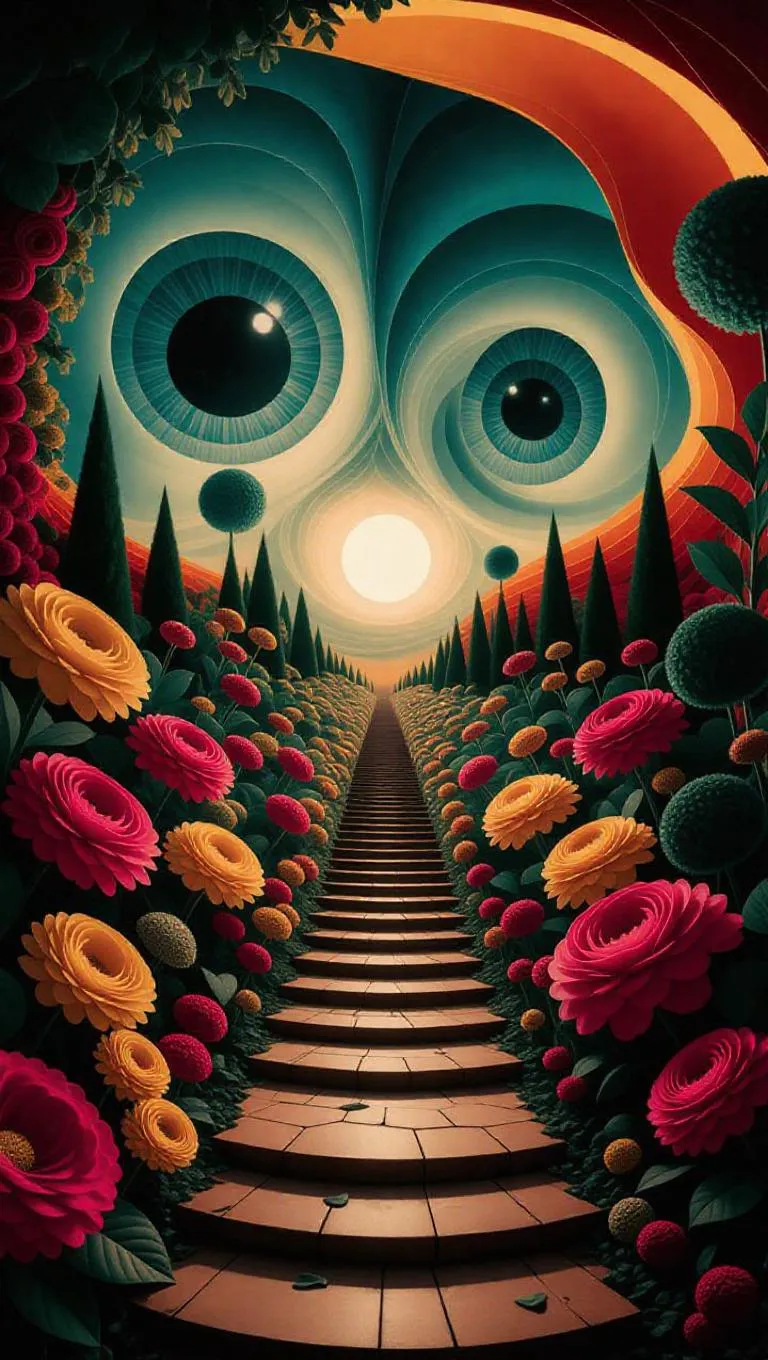 Explore AI-generated surrealism with "Garden of Earthly Delights": psychedelic cartoon visuals, liquid oil projections, and morphing collages in horror vacui style. Witness nature's avant-garde light art through HD renders, extreme detail, and entoptic phenomena. Create stunning, layered abstract worlds with VivaGo.ai's AI effects for mesmerizing, depth-rich digital masterpieces.