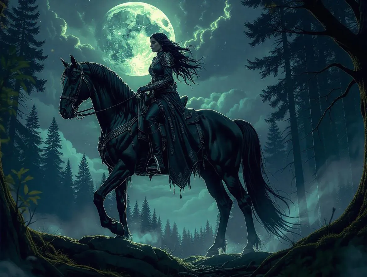Transform text into AI-generated visuals of a cosmic journey with Vivago.ai. Depict a woman riding through starlit realms, thunderous energy in her soul, guided by celestial trails. Create dynamic, ethereal scenes blending adventure, mystique, and AI-powered artistry for storytelling or digital projects.