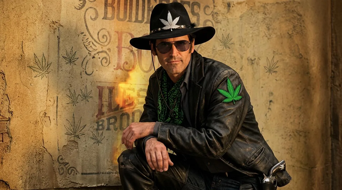 Make Brisco County Jr. a Marijuana cowboy avenger.Change his clothes color to black with the marijuana symbol in his hat like hero and wearing sunglassess