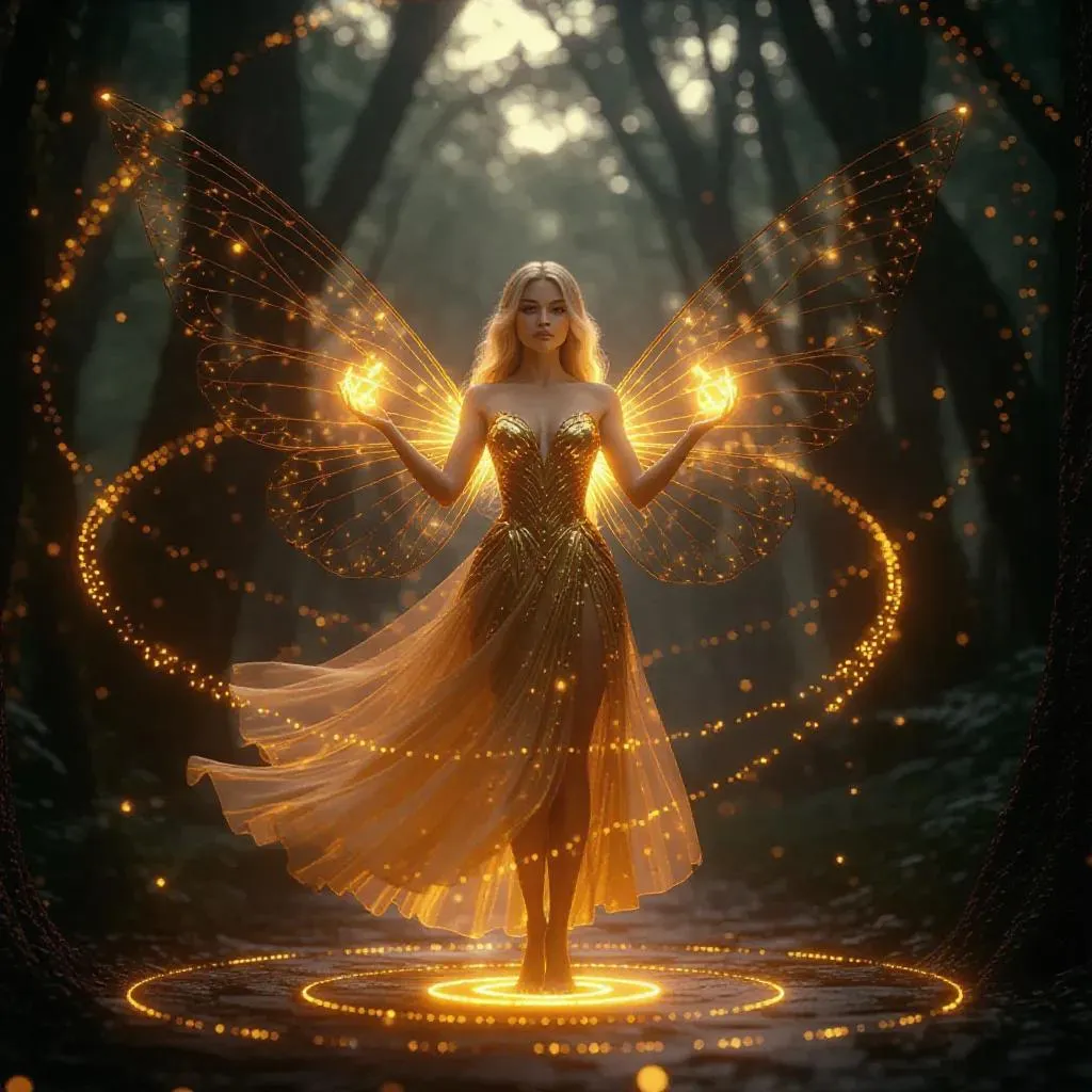 Create enchanting AI-generated fantasy art with a mystical golden fairy surrounded by glowing orange sparks, fiery wings, and a dark enchanted forest. Perfect for magical themes. Design ethereal characters, glowing effects, and mystical atmospheres using VivaGo.ai’s AI tools for professional-grade, luminous visuals. Ideal for fantasy storytelling and mystical scene generation.