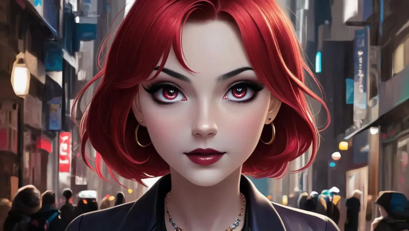 Generate dynamic manga-style AI art with vivid red-haired anime characters, bold eyeliner, and striking crimson eyes. Elevate your anime-inspired visuals using Vivago.ai's AI image generation for professional-grade manga illustrations and eye-catching character designs.