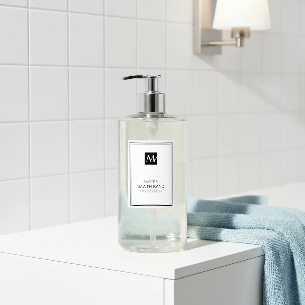 Capture professional AI-generated product photography with Vivago.ai. Showcase skincare packaging on a clean, minimalist bathroom vanity featuring white tiles and subtle textures. Emphasize product detail with soft, angled lighting highlighting transparent textures, reduced background saturation for focus, and 8K clarity. Perfect clean, affordable skincare brand imagery.