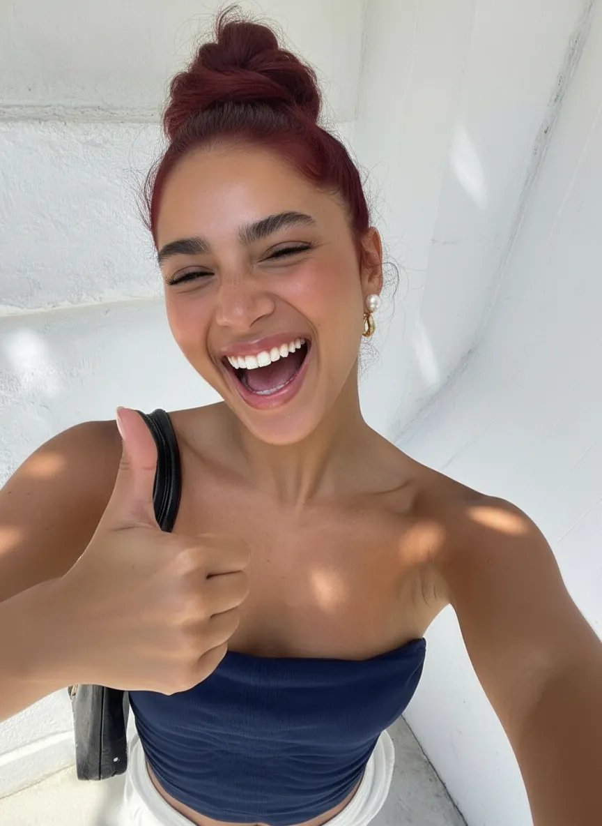 Transform your character into joyful laughter with this AI effect. Preserve original features while swapping expressions to show open-mouthed laughter, squinted eyes, raised eyebrows, and a thumbs-up pose. Achieve contagious joy & realism while keeping face shape, hairstyle, and clothing consistent. Easily generate approval-signaling characters.