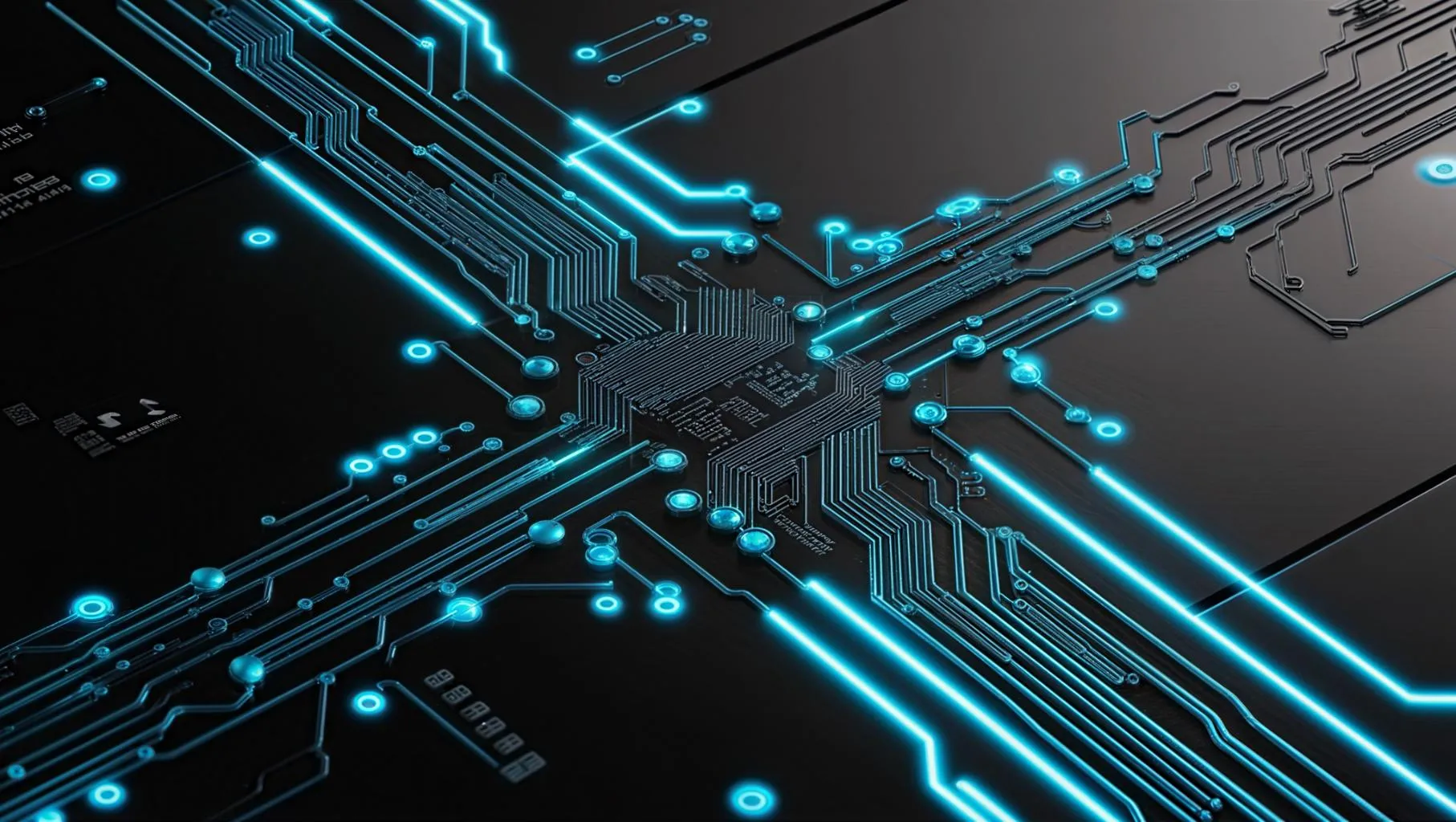 Generate a neon-glowing cyberpunk circuit board design with AI. Vivago.ai crafts intricate futuristic patterns, pulsating nodes, and matte-black tech surfaces for immersive sci-fi visuals. Ideal for digital art, tech themes, and high-energy cyberpunk aesthetics.