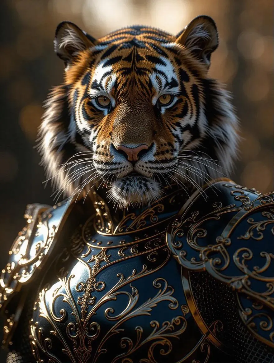 Create striking AI-generated Beloid characters with tiger armor in light-brown, dark-gray, blue, and gold palettes. Vivago.ai transforms text prompts into vivid visuals, blending AI effects and editing tools for professional, dynamic designs. Ideal for crafting unique, high-quality AI art with precision.
