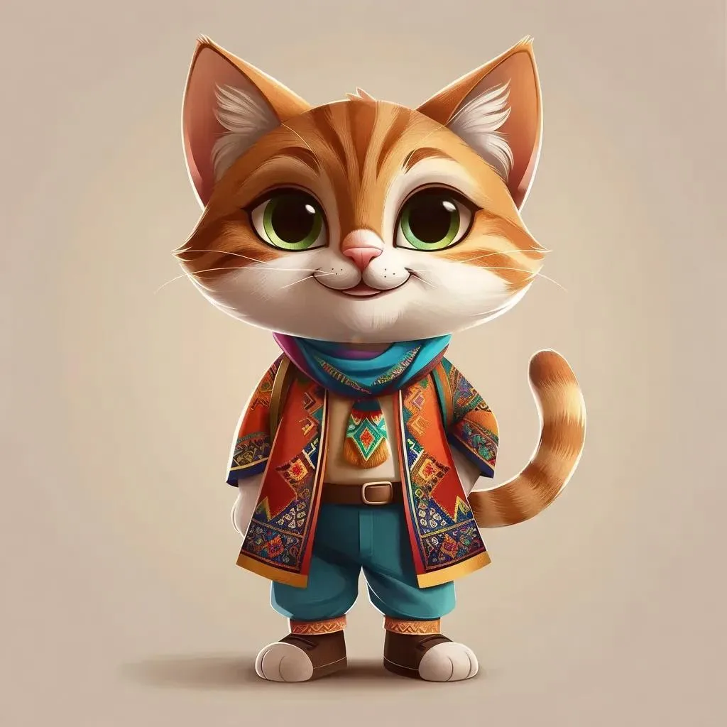 Create a charming AI-generated anthropomorphic cat mascot for Baku travel agencies, blending cheerful expressions, casual attire, and traditional Azerbaijani motifs. Perfect for approachable, culturally-inspired branding with Vivago.ai’s professional AI tools—craft adorable mascots that embody local charm and travel excitement through advanced image generation and creative effects.