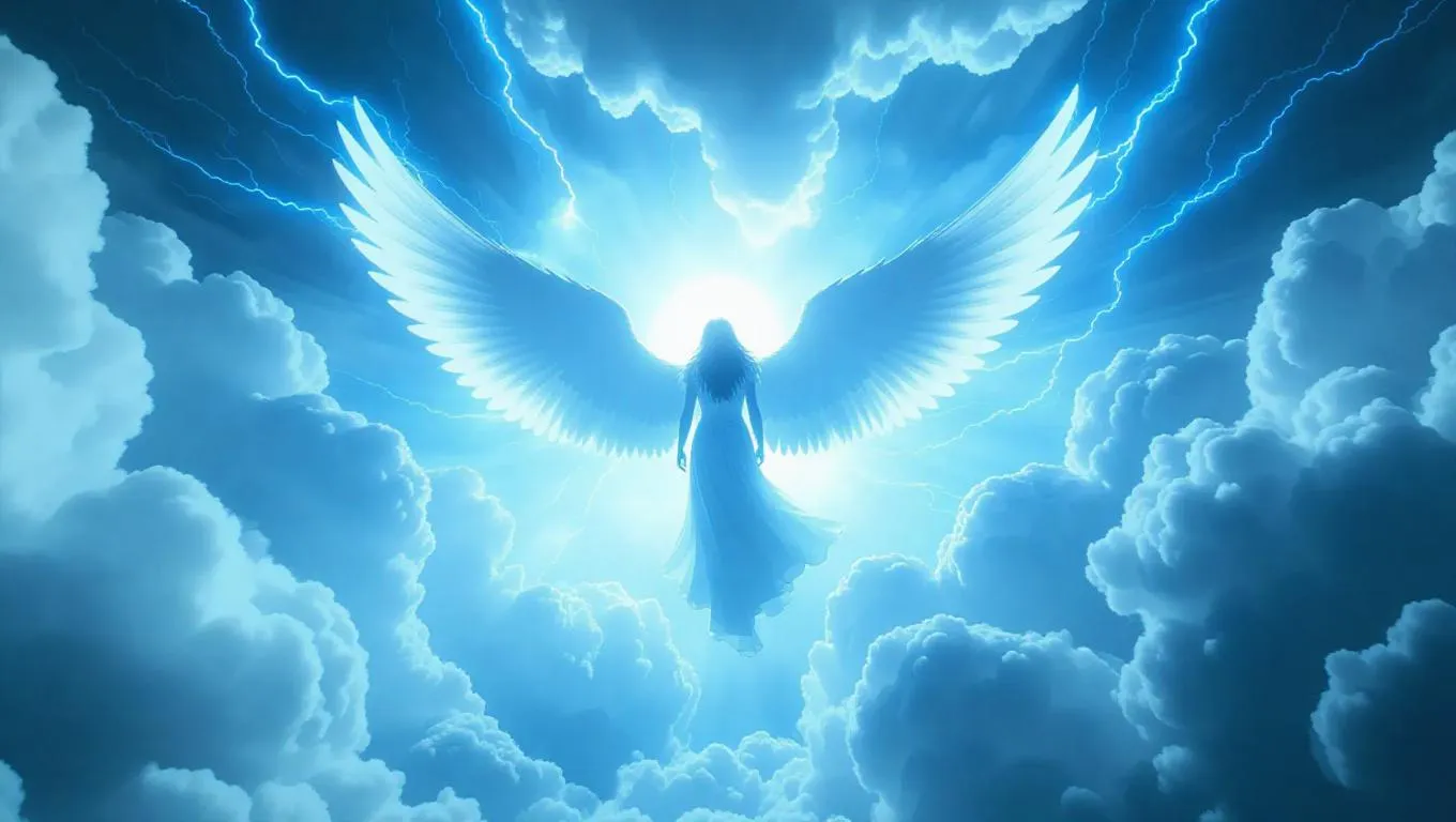 Text to ImageAn angelic being soaring above stormy, swirling clouds, wings spread wide, halo of radiant light surrounding them. The sky is a fierce, electric blue, evoking a sense of divine vigor and dynamism.Recreate