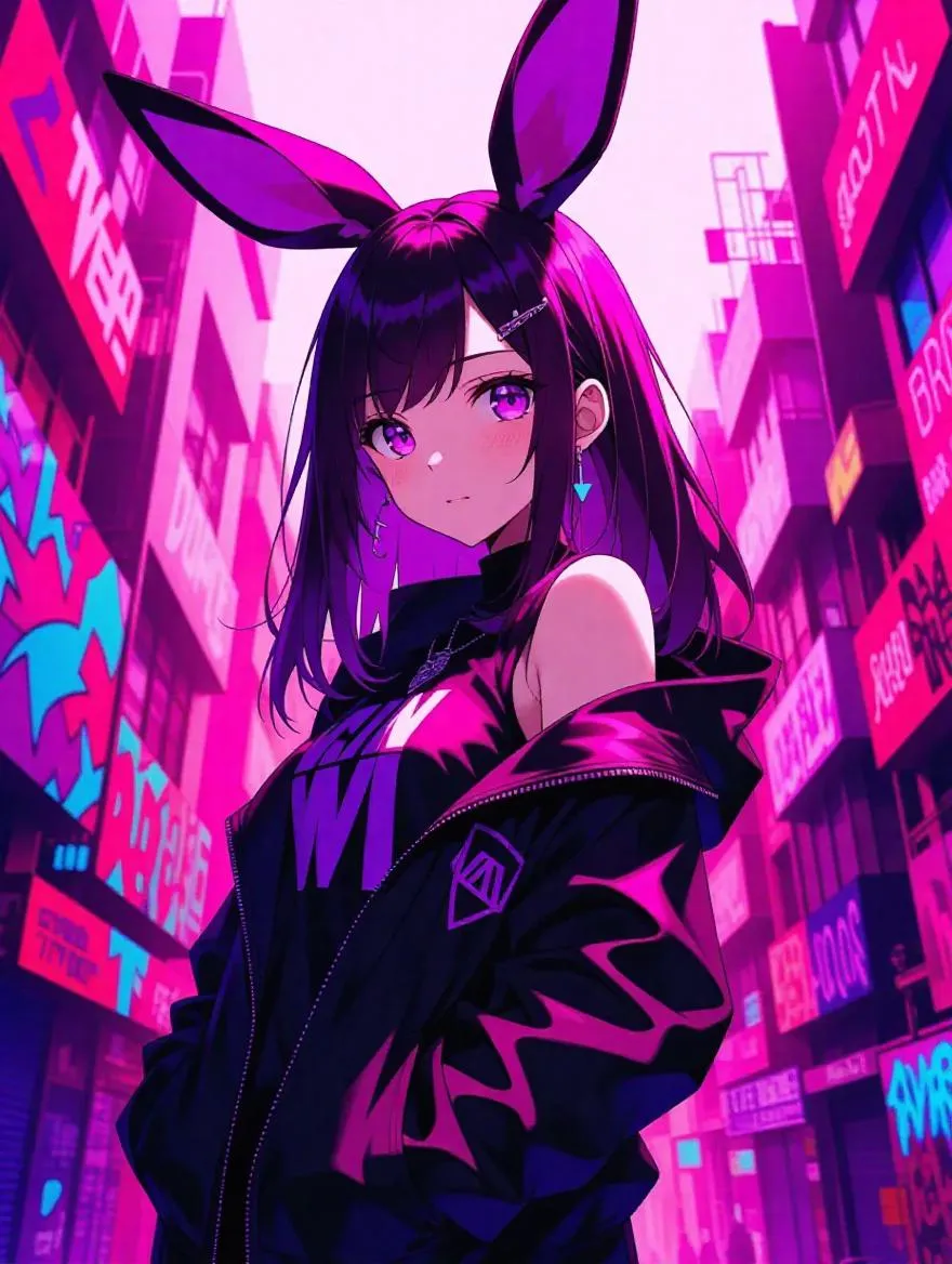 Create vibrant AI anime murals with VivaGo.ai. Generate colorful anime girl art featuring purple-pink-black palettes and whimsical rabbit ears. Transform text prompts into dynamic character designs or street-style murals. Perfect for anime fans, digital artists, and content creators seeking eye-catching, customizable AI-generated artwork with professional editing tools.