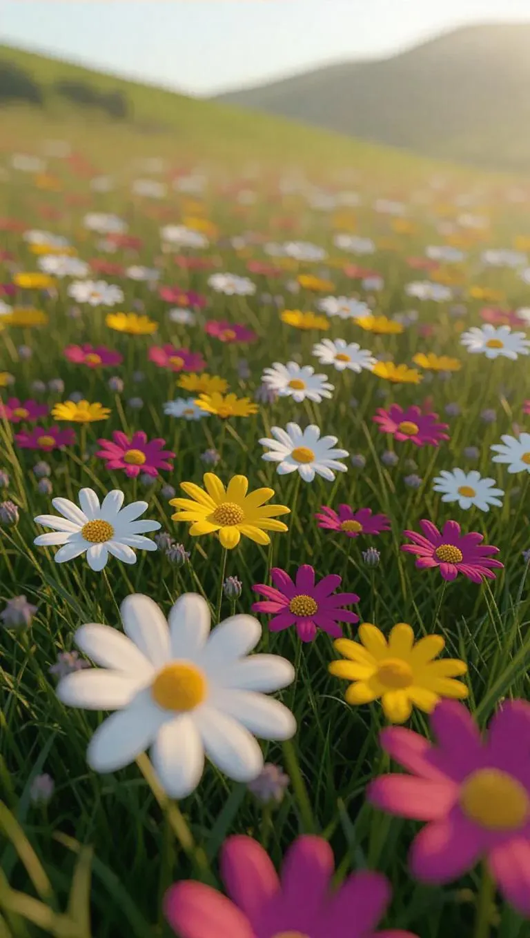 Transform your screen with AI-generated vibrant meadow scenes. Ultra-detailed 8K wildflowers swaying in breeze, realistic textures, vivid colors. Eye-level perspective for immersive wallpaper. Perfect for nature-inspired digital art, animated backgrounds. Create professional-grade animated wallpapers effortlessly with VivaGo's AI effects.