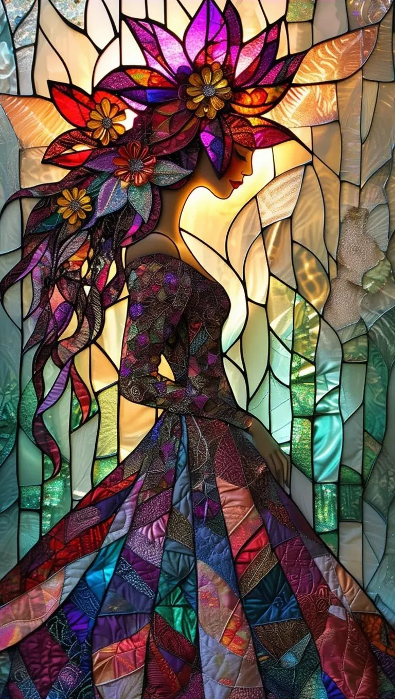 Create stunning AI art with Vivago.ai's image generator. Transform text into regal visuals featuring intricate stained glass crowns, vibrant quilting patterns, and flowing hair. Craft detailed paper-textured gowns with mesmerizing glass-like reflections and shadow interplay. Elevate creativity with professional AI tools for seamless, vivid, and imaginative designs.