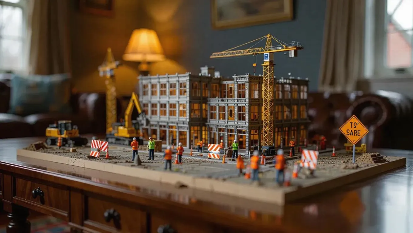 Create a vivid AI-generated diorama of civil, commercial, and industrial closures with miniature construction workers, barriers, and signage. Craft precise scenes on wooden tables using AI image tools for lifelike details and warm lighting effects. Ideal for visualizing urban projects or architectural concepts with professional-grade realism through Vivago.ai's advanced creative AI solutions.