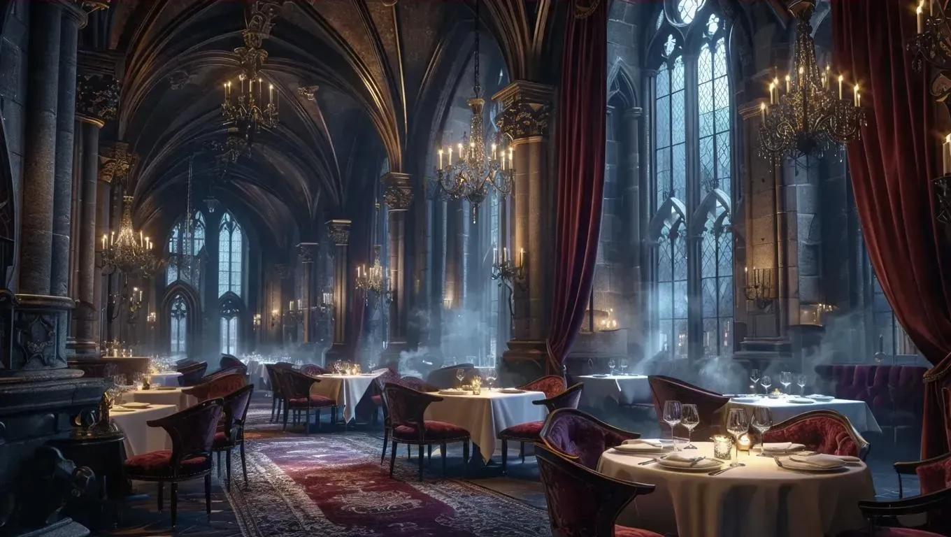 Experience AI-crafted elegance in a haunted castle hotel restaurant. Ethereal chandeliers, phantom-draped tables, and spectral ambiance blend luxury with supernatural charm. Perfect for eerie yet sophisticated dining concepts, transform your vision into hauntingly beautiful visuals with vivago.ai's advanced AI effects and image generation tools.