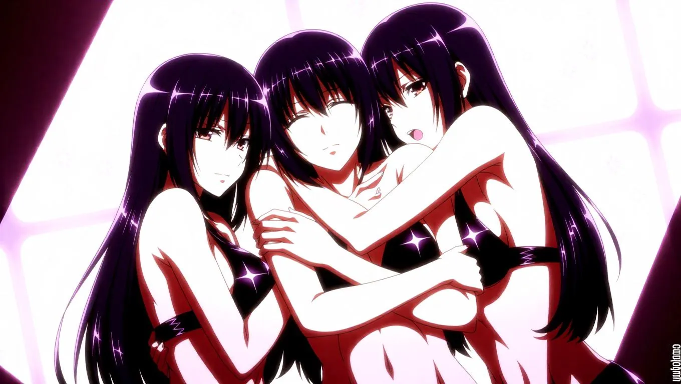 A serene, ethereal woman with flowing lavender hair and glowing violet eyes, wearing a futuristic, holographic kimono embedded with soft pulsing lights, standing beneath a bioluminescent cherry blossom tree in full bloom. The night sky above sparkles with stars and two glowing moons. Style of dreamy fantasy illustration, soft neon lighting, cinematic atmosphere, crystal-like texture, masterpiece