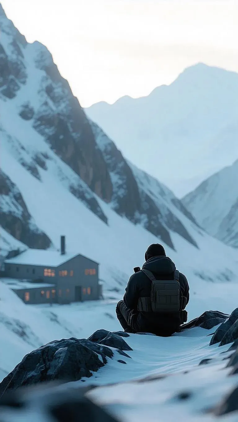 Text to ImageA lone sniper sits on a rocky outcrop, overlooking a snowy valley at dusk. Their target, a rogue scientist, exits a research facility. The composition highlights the stark, white landscape and the sniper's icy resolve.Recreate