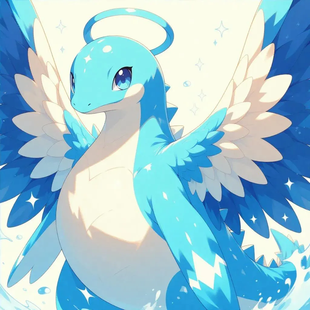 Synthetic Angel art style, Wailmer with blue and light-tan color palette
