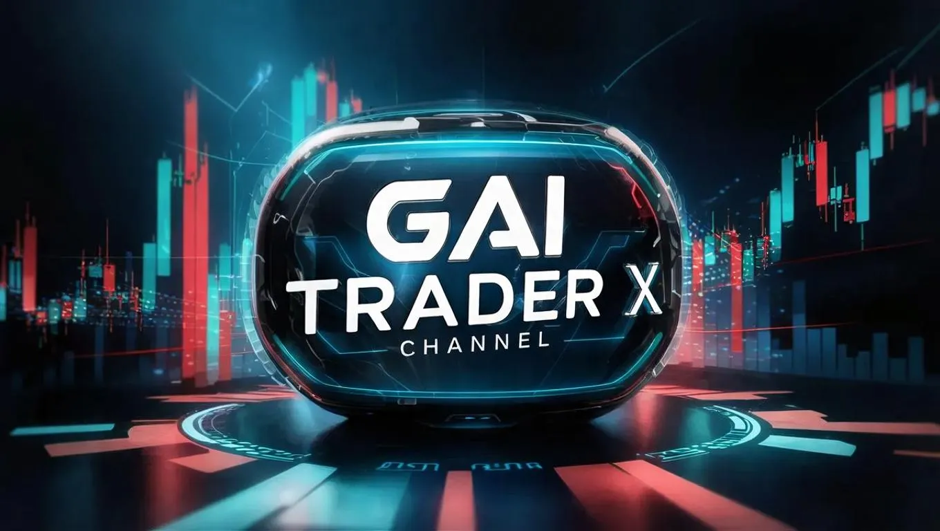 Generate a sleek futuristic 3D HD visualization of "GAI Trader X" with dynamic moving graphs, blending AI trading innovation with cutting-edge design. Ideal for branding financial platforms through high-resolution, data-driven visual storytelling.