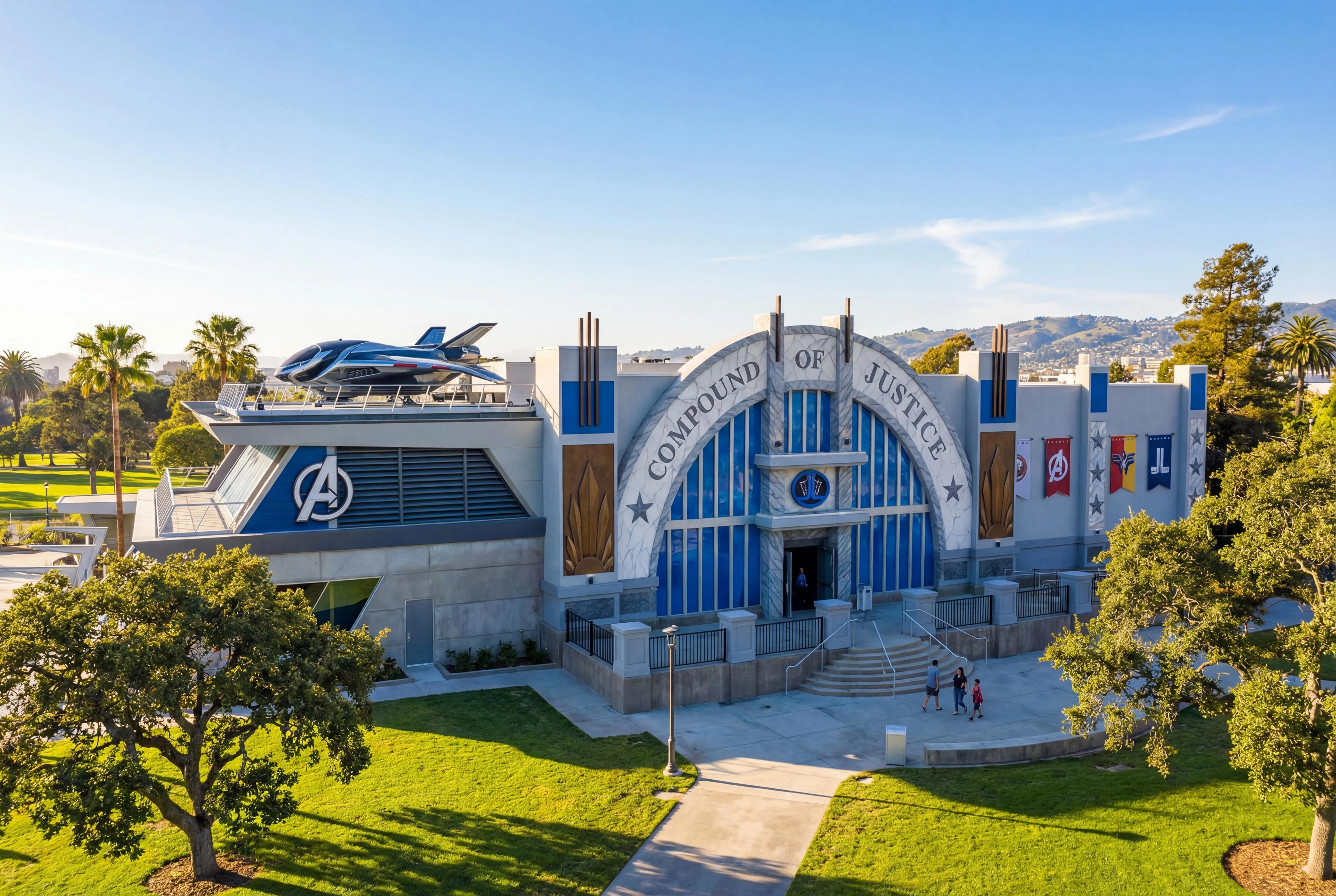 The Avengers Compound and the Hall of Justice interchangeably combine into each other together as one to form the Compound of Justice, located in Lowell Park, Oakland, California.