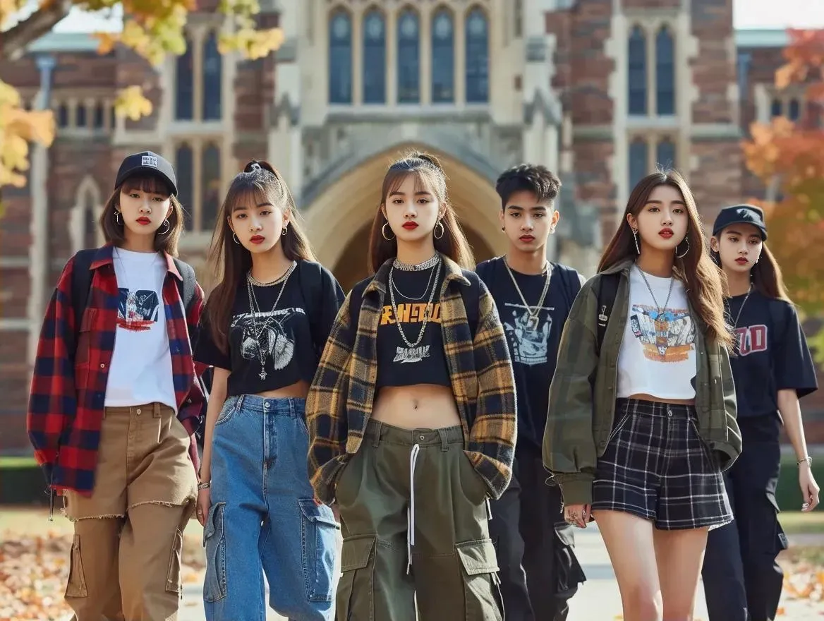Discover trendy college campus fashion with AI-generated visuals. Explore oversized grunge outfits, cargo pants, and skirt-and-tee combos for effortless streetwear vibes. Create stylish, youthful looks blending comfort and edgy aesthetics. Perfect for campus inspiration. Design unique AI fashion content with VivaGo AI.
