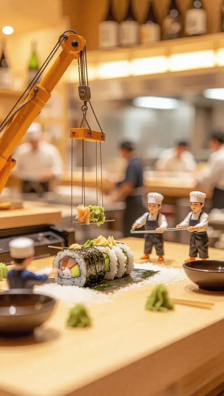 Transform text into vivid AI-generated visuals with vivago.ai. Craft whimsical scenes like a bustling miniature sushi bar, where tiny chefs meticulously assemble rolls with nori, fresh fish, and avocado. Blurred backgrounds reveal cozy ambiance with sake and miso soup. Perfect for creative projects needing playful, detailed AI art. Elevate your vision with precision and imagination.