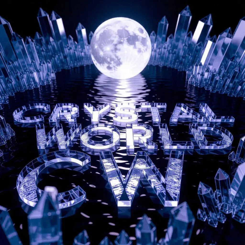 Discover ultra-realistic 3D HD imagery of a moonlit crystallized terrain with "CRYSTAL WORLD" and "CW" engraved. Cinematic lighting highlights intricate textures, super clarity, and elegant ambiance. AI-powered precision creates stunning ultra-detailed visuals with cinematic elegance. Transform your vision into reality with VivaGo AI's advanced tools.