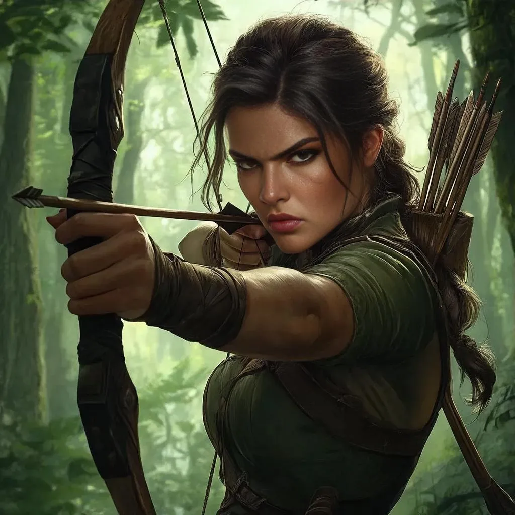 Create striking AI-generated art of a fierce female archer ranger with a bow, capturing her menacing intensity and combat-ready stance. Vivago.ai's AI image generator transforms text prompts into dynamic character designs, perfect for fantasy art, gaming visuals, or heroic warrior imagery. Explore AI-powered tools for lifelike textures, dramatic lighting, and professional-grade fantasy illustrations.