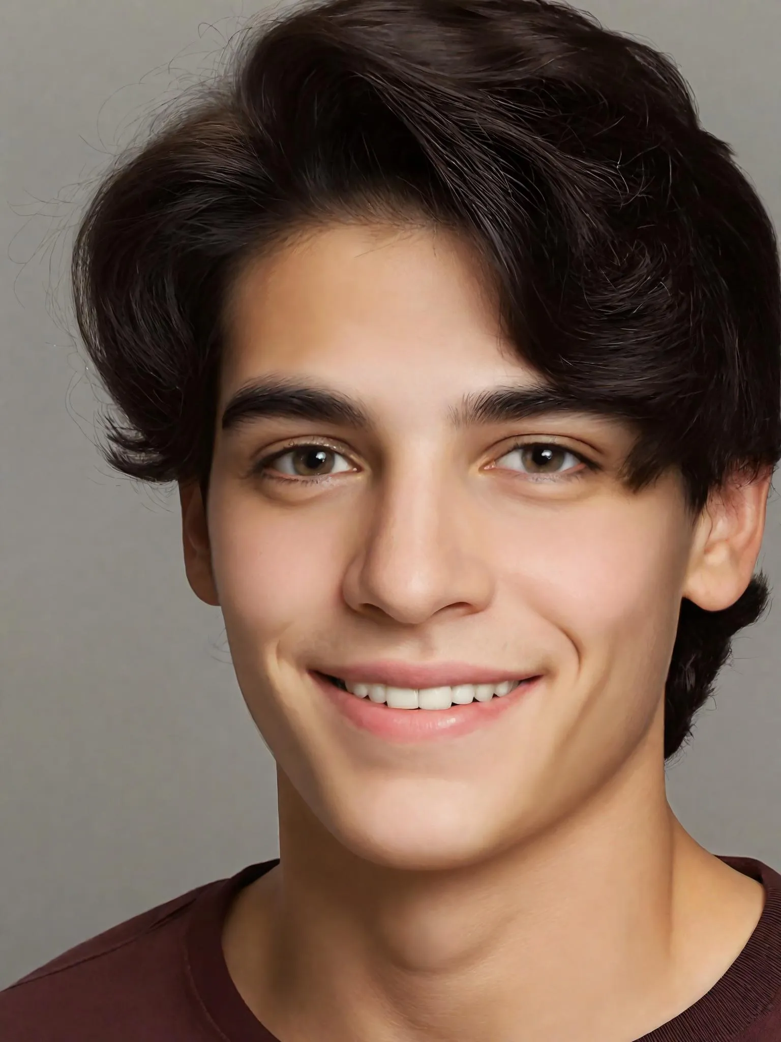 Image to Imagehyper-realistic eighteen-year-old Italian with athletic build, black thick hair and dark brown eyes and olive skin. He has a gentle smile and is approachable. Recreate
