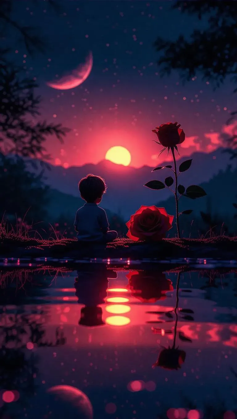 Create serene AI-generated Monet-style artwork of a prince and red rose under a cosmic sunset with Vivago.ai. Transform text into ultra-detailed, dreamy visuals featuring surreal celestial landscapes, healing color palettes, and impressionistic brushstrokes for professional creative projects.