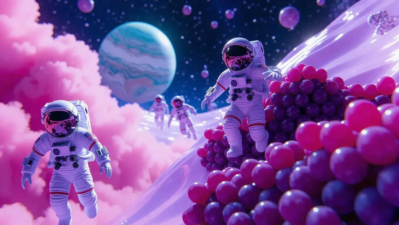 Explore the Grape Galaxy AI-generated universe: surreal grape planets, floating juice rivers, and melon-suited astronauts. Blending Studio Ghibli whimsy with minimalist sci-fi, this 3D dreamscape features cosmic airbrush textures, color-pencil details, and abstract fruit fantasy vibes. Create sweet celestial realms through AI artistry for concept-inspired, otherworldly visuals.