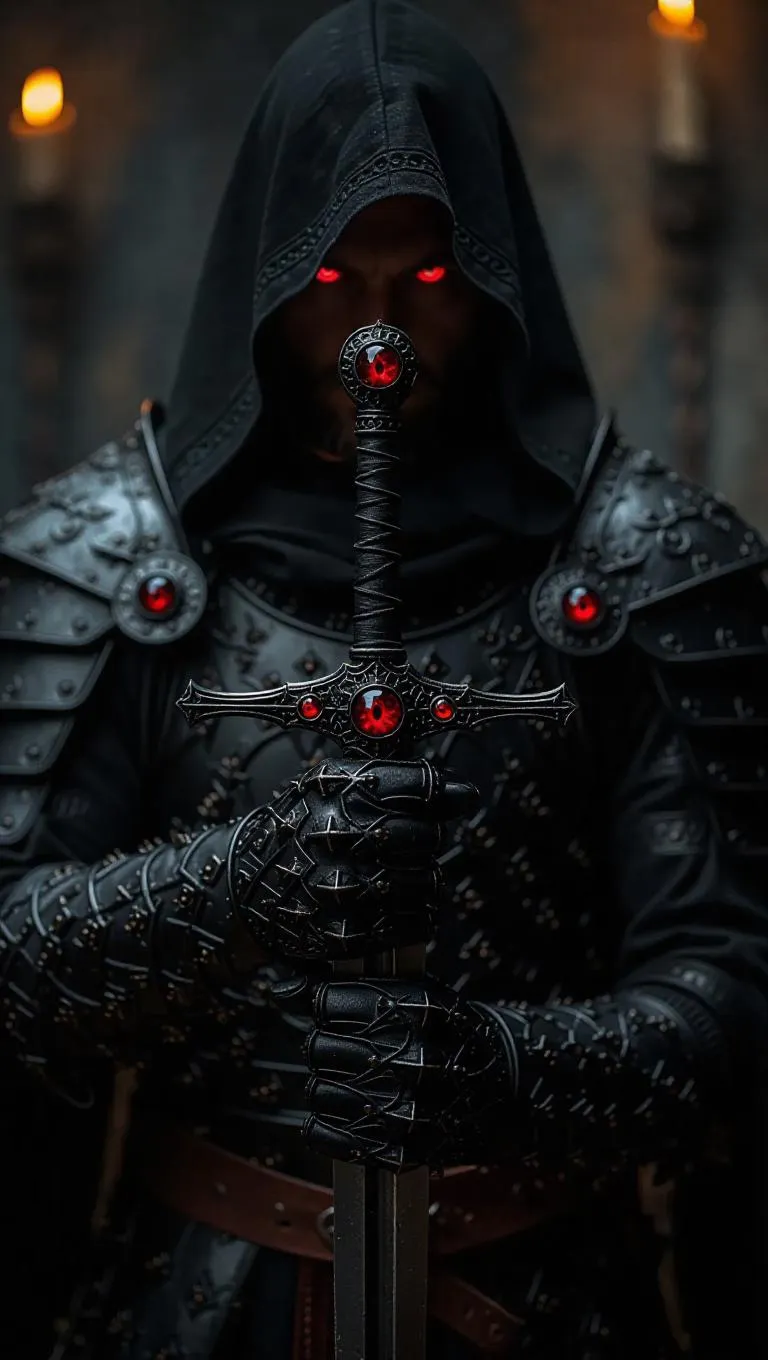 Craft a menacing dark shadow warrior wielding a demonic sword infused with a three-eyed monster's essence using vivago.ai's AI image generator. Generate supernatural fantasy art with vivid AI effects, transforming text prompts into hyper-detailed characters, mystical weapons, and eerie visual storytelling. Elevate dark fantasy designs with professional-grade AI-powered artistry.